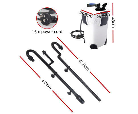 Use a multi-level approach to filtration and filter your tank water with our Giantz . This external filter is designed to be positioned outside of the tank and draw water into the filter through an inlet tube and return the water via an outlet tube.